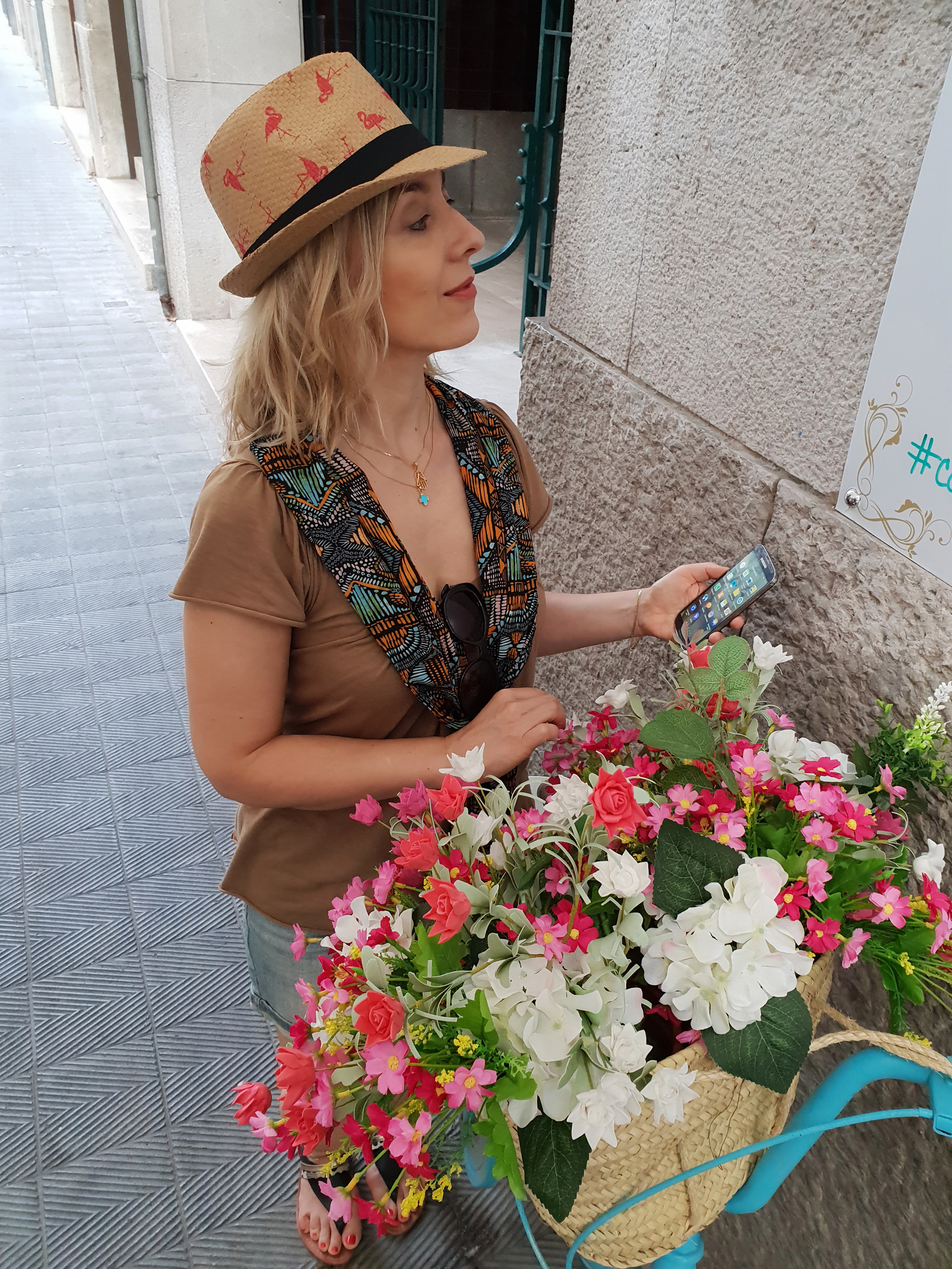 Et j’arbore mon tout nouveau chapeau, estival et original avec son motif de flamands roses, acheté sur place la veille. Sans le vouloir, ma tenue est en osmose avec la couleur du musée et des bâtiments alentour, un camaïeu de crépis ocres, roses et terre cuite.