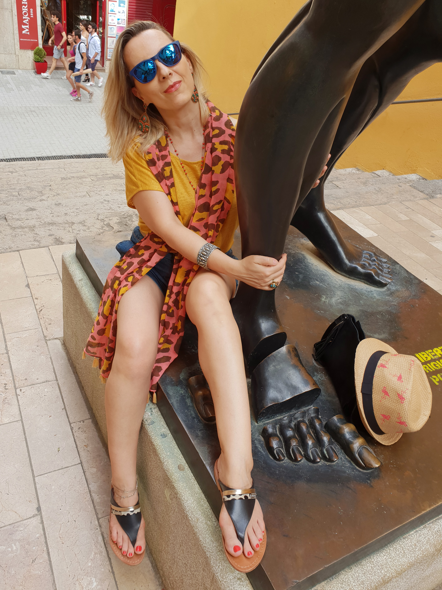 A l’aube de ce deuxième jour à Figueras, nous avons décidé de ne pas perdre de temps et d’aller découvrir l’incontournable musée Dalí. Le temps était changeant mais après un épisode venteux qui a chassé les nuages, le grand soleil est revenu ! Pour l’occasion, je me mets en mode chic et confortable dans un de mes combos préférés de l’été : tee-shirt en lin pailleté, short en denim et sandales.