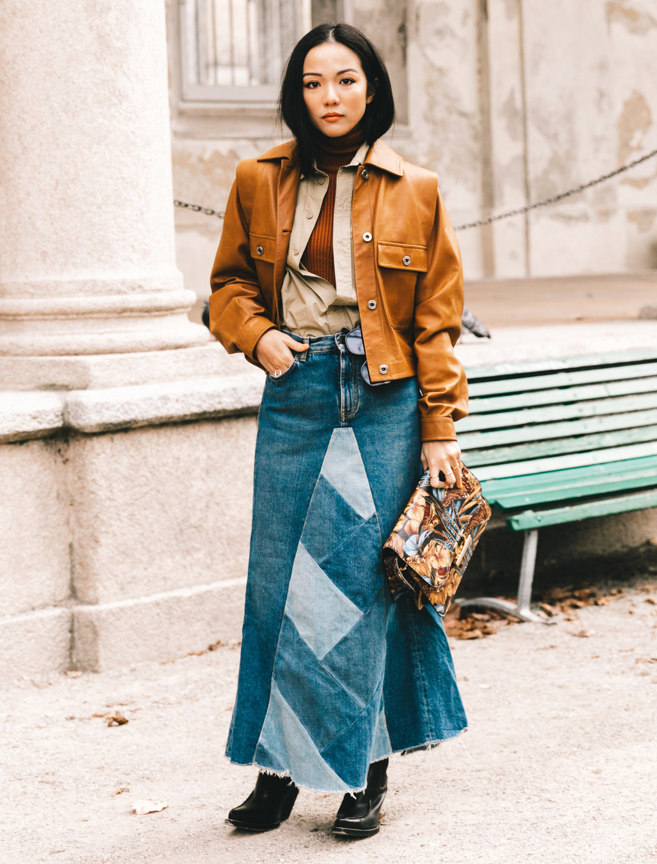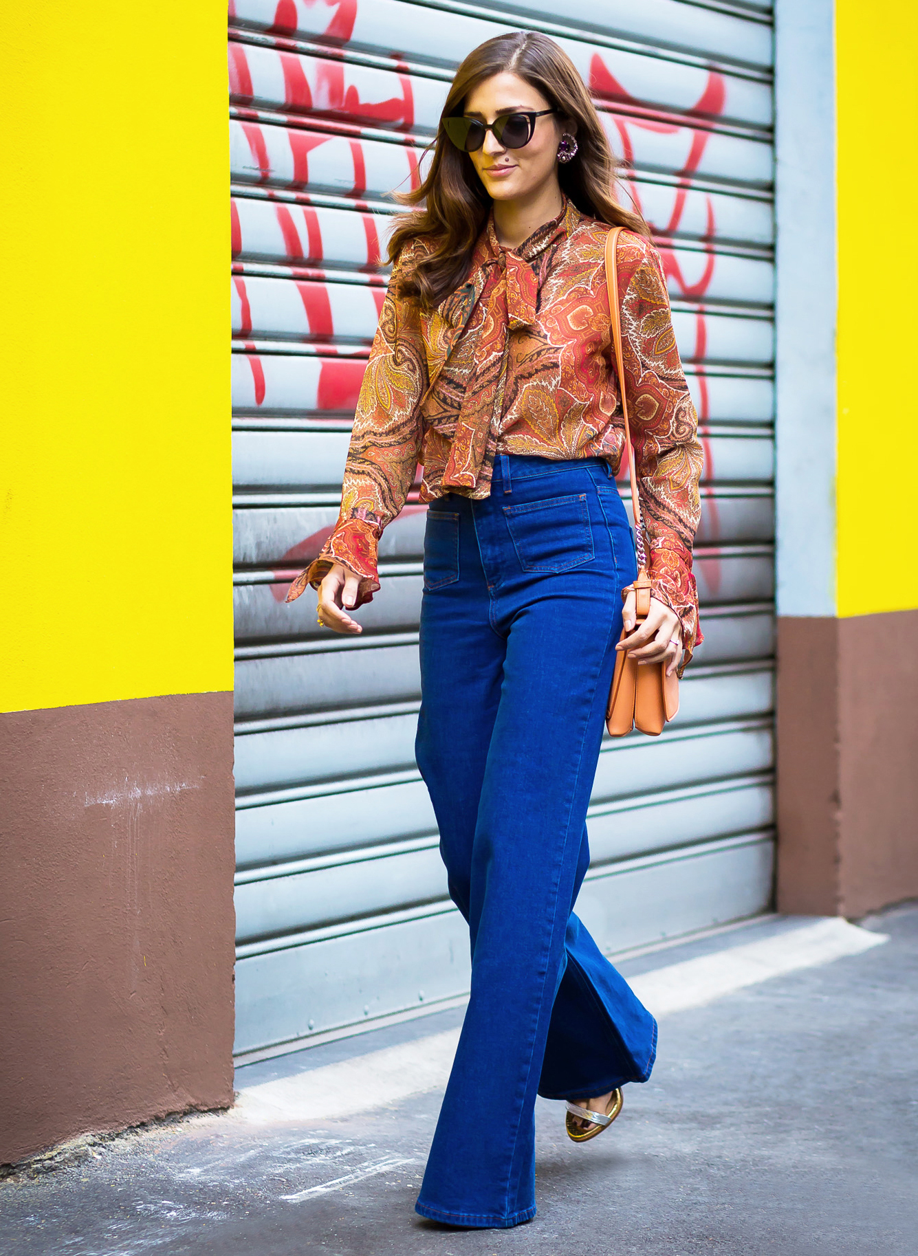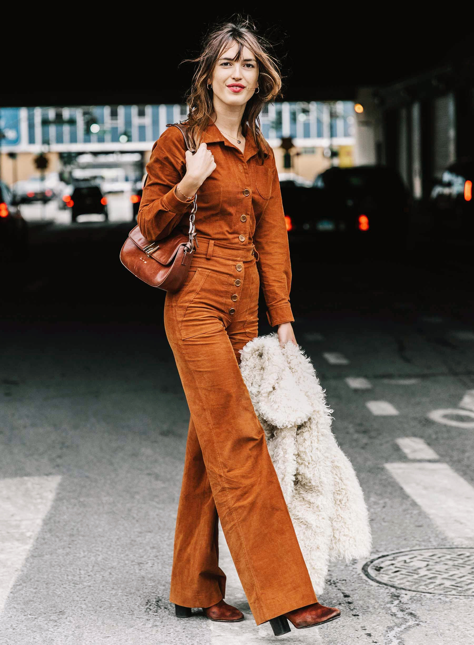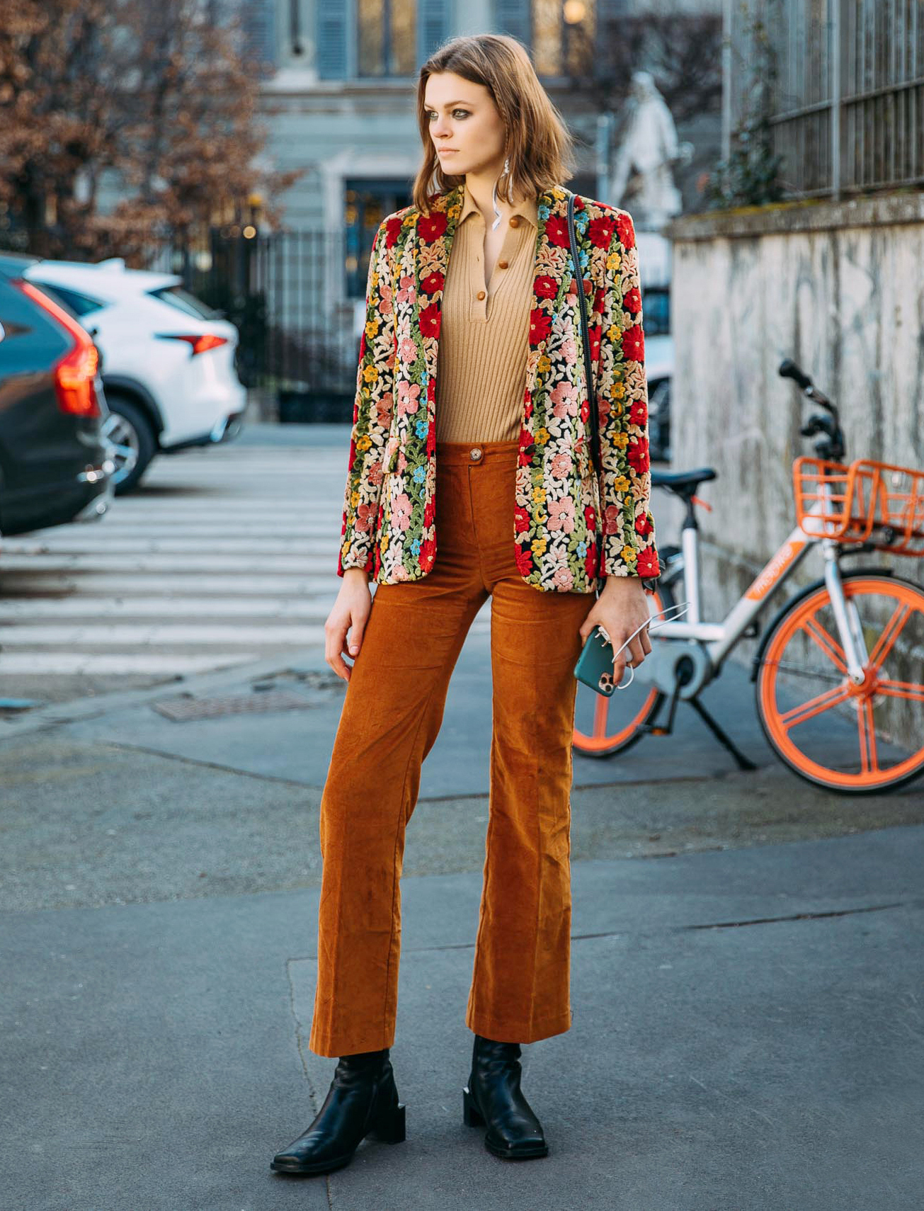 Les stylistes et influenceuses du moment maîtrisent parfaitement le style Seventies : jeans flare ou pattes d’eph, velours côtelé, patchwork denim, imprimé cachemire, cuir et daim fauve.
