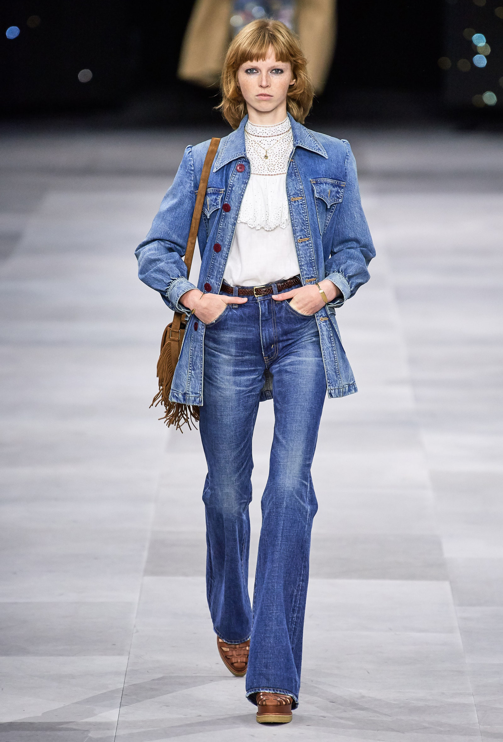 – Jeans flare (taille basse ou haute), pantalon patte d’eph, pantalon palazzo (jambe large), salopette, combi-pantalon, combi-short.