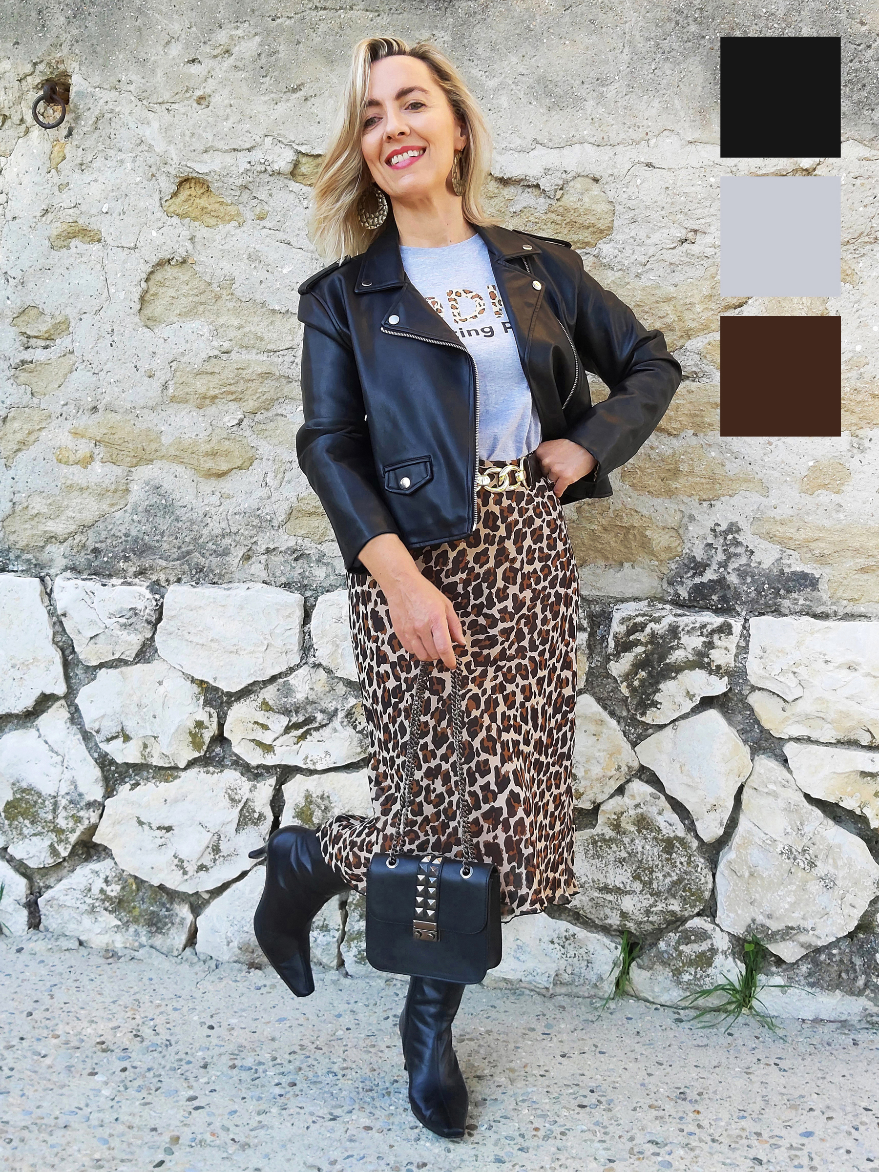 Elles ne vont pas se retrouver dans le style chic décontracté, pas assez « affirmé » en terme de personnalité. Avec un nombre de vêtements limité et une palette de couleurs réduite, il est souhaitable d’inclure quelques pièces fortes ou des imprimés dans sa garde-robe capsule pour apporter de la fantaisie et du relief : personnellement, je ne pourrais pas me passer du motif léopard qui fait partie de mon style signature.