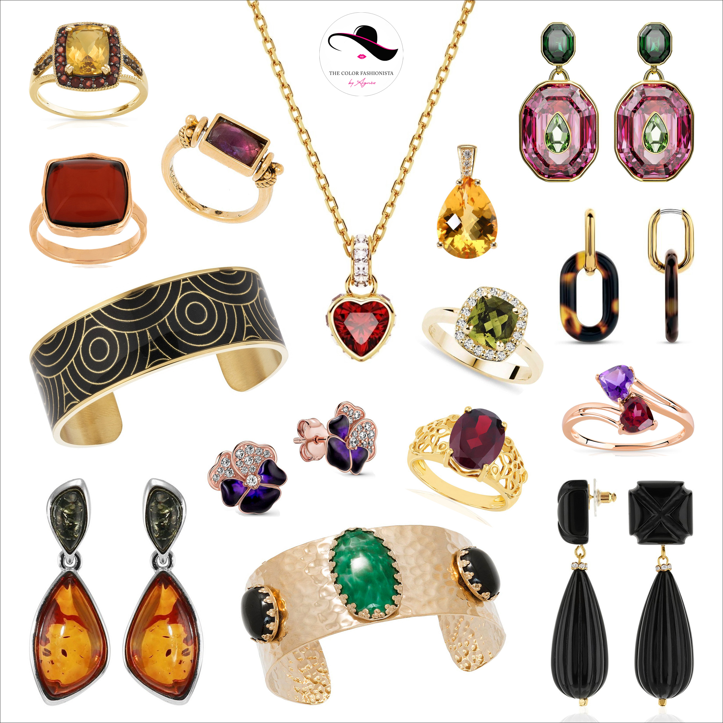 En accord avec son sous-ton neutre-chaud, la femme AUTOMNE PROFOND est mise en valeur par l’or et le bronze mais l’influence froide de l’hiver l’autorise à porter de l’étain voire de l’argent s’il n’est pas trop bleuté. Elle évitera cependant l’or blanc, le titane et le chrome (trop froids) et l’or rose qui s’avère trop fade. Ses caractéristiques sombre + amortie seront valorisées par les finis mats et texturés (patinés, vieillis, oxydés, noircis, brossés ou martelés) plutôt que par les finis brillants et polis.