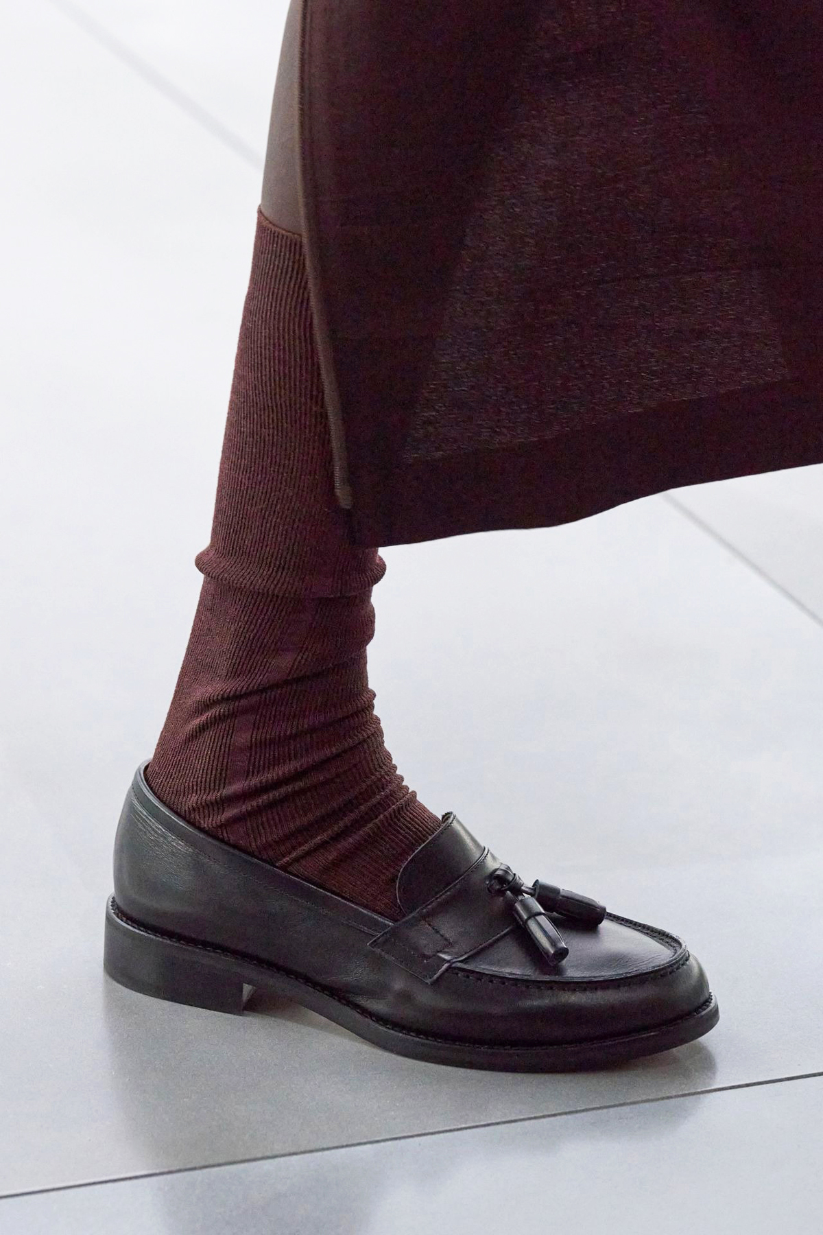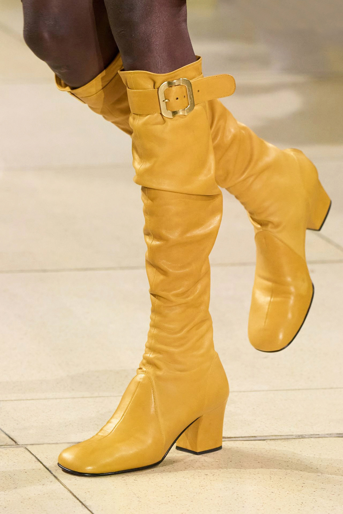 • Les chaussures : ballerines, mules, mocassins, derbies à lacets, escarpins sophistiqués, slingbacks à talon, souliers rouges, souliers cloutés, souliers compensés, sneakers minimalistes, bottes cavalières, bottes seconde peau, bottes-chaussettes, bottes plissées, bottes en daim marron, bottes rembourrées, cuissardes.