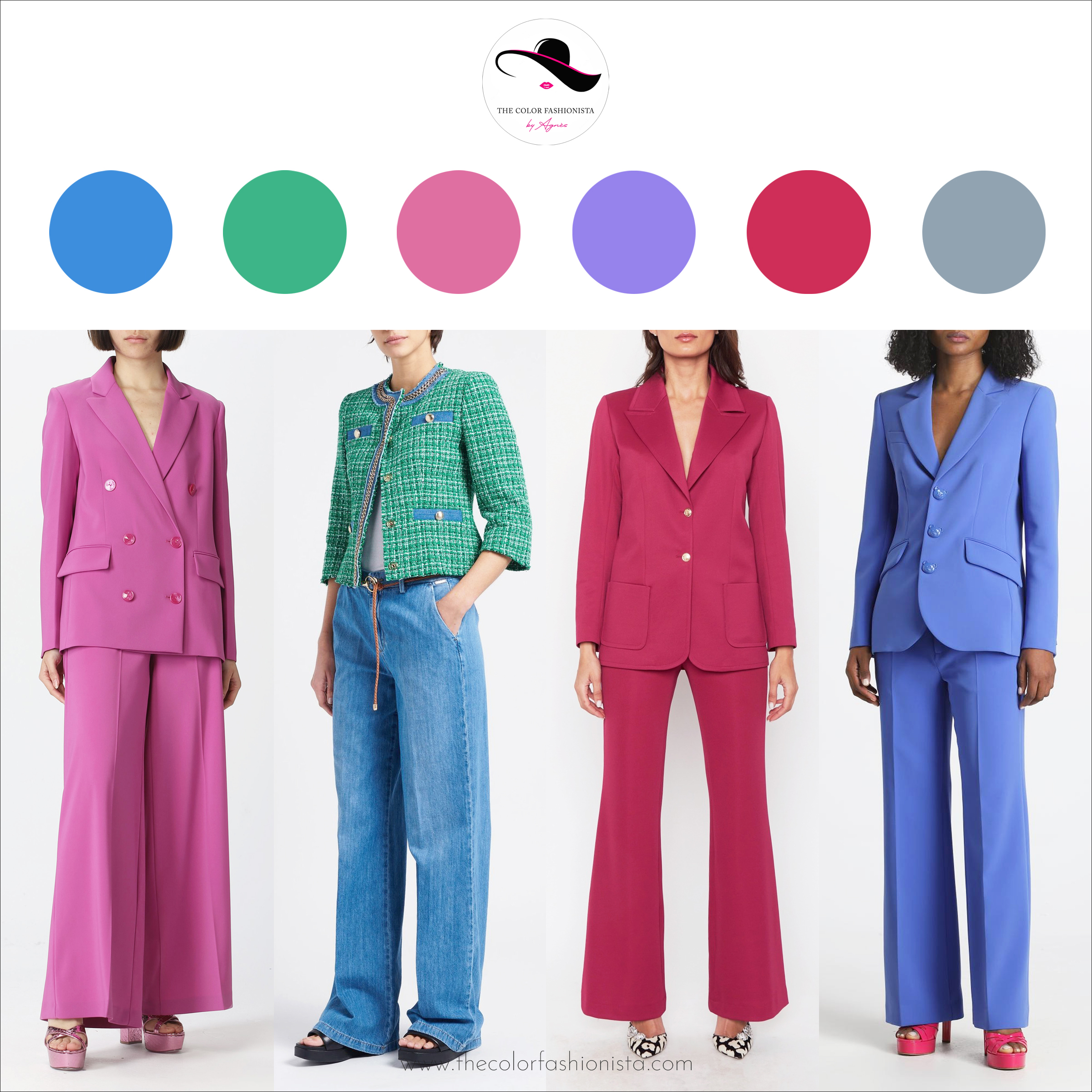 La femme ÉTÉ FROID sera mise en valeur par des tenues élégantes, alliant sobriété et raffinement. Les meilleures associations sont celles qui reflètent son contraste tonal modéré, pour un rendu apaisant et subtil sans dissonance. L’apparence globale de l’ÉTÉ FROID étant feutrée plutôt que contrastée, les camaïeux de nuances proches (bleu + vert bleuté par exemple) sont très flatteurs, ainsi que les looks monochromes qui jouent sur le contraste de valeur (une même couleur en version claire/foncée). Inversement, les harmonies triadiques ou complémentaires très tranchées (jaune soufre + lavande) sont à proscrire car trop agressives. La combinaison d’un neutre avec une couleur accent est le meilleur compromis, apportant le juste équilibre.